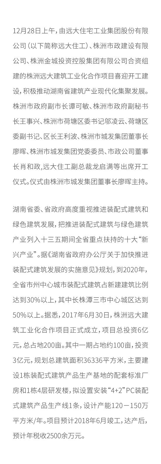 株洲遠大喜迎開工建設 奮力譜寫湖南省建筑產業現代化集聚發展新篇章