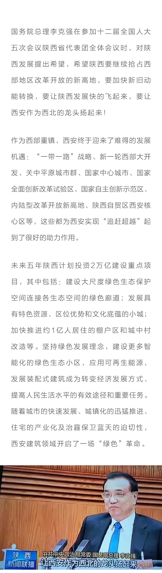 國(guó)務(wù)院總理李克強(qiáng):2萬(wàn)億支持陜西建設(shè)!裝配式建筑助力讓西安龍頭揚(yáng)起來(lái)